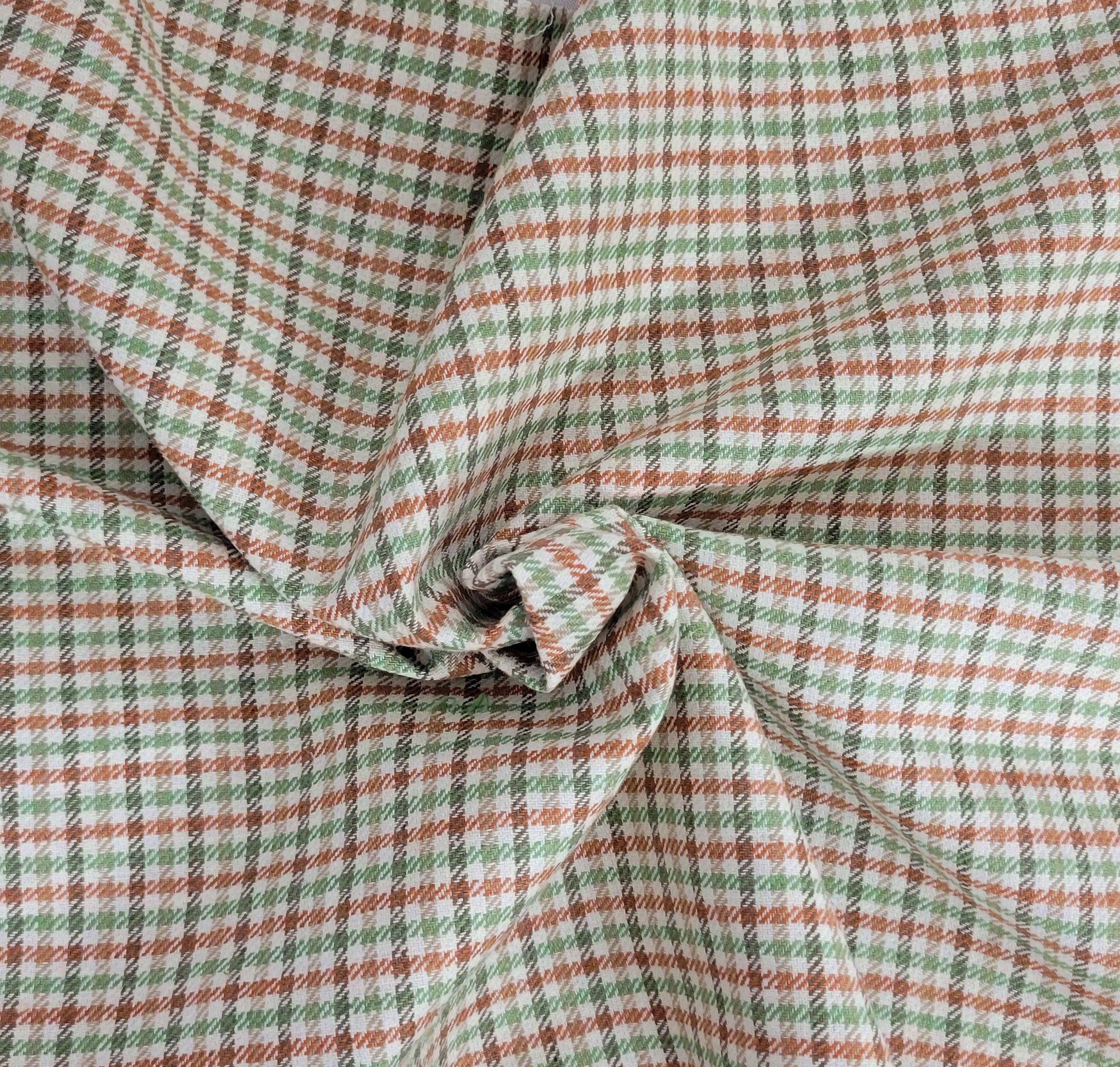 Green Brown Taupe Yarn Dye Linen Cotton Gingham